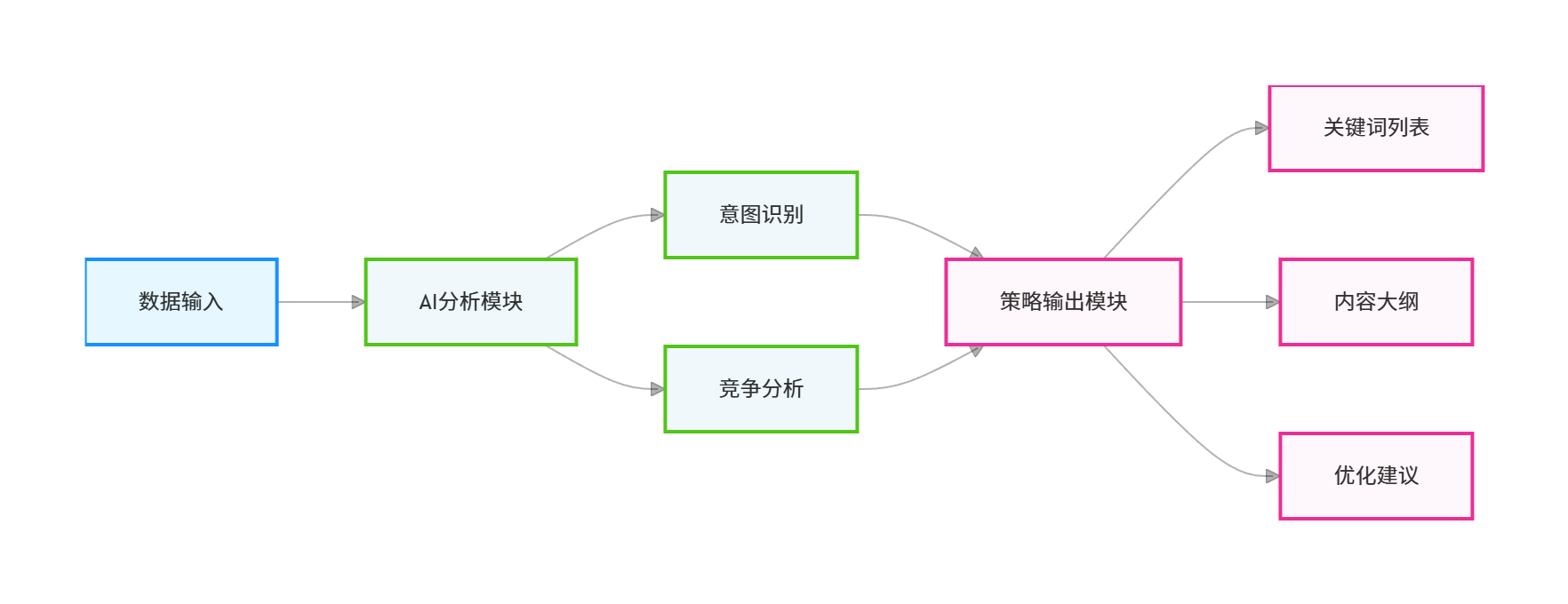 内容策略生成:AI根据目标关键词集群,自动生成涵盖核心话题、子话题及相关问题的内容大纲,指导内容创作方向。
